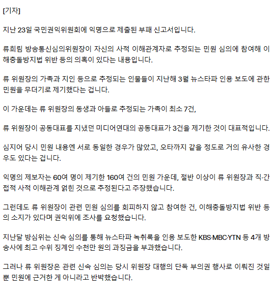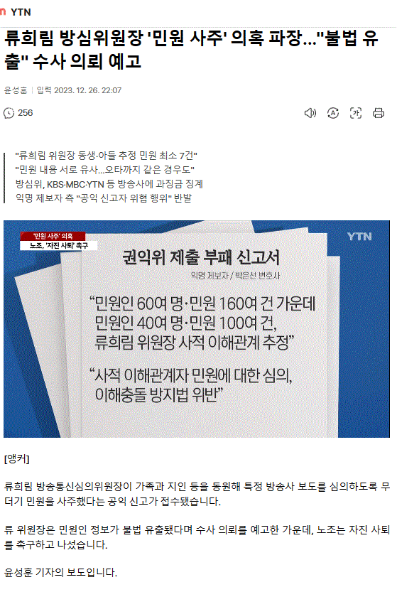 류희림 방심위원장 '민원 사주' 의혹 파장..."불법 유출" 수사 의뢰 예고