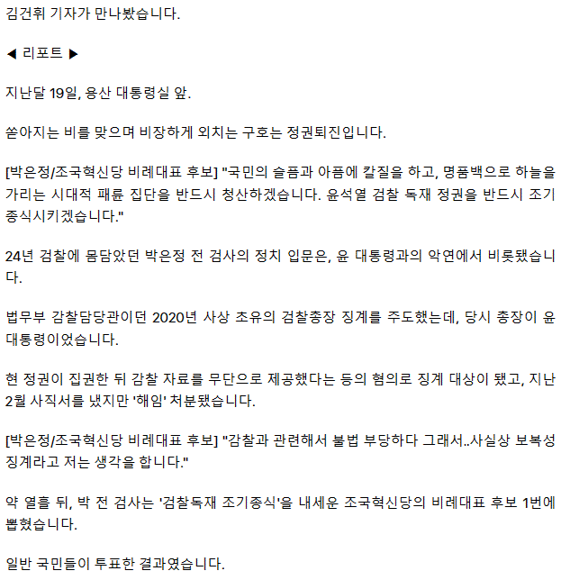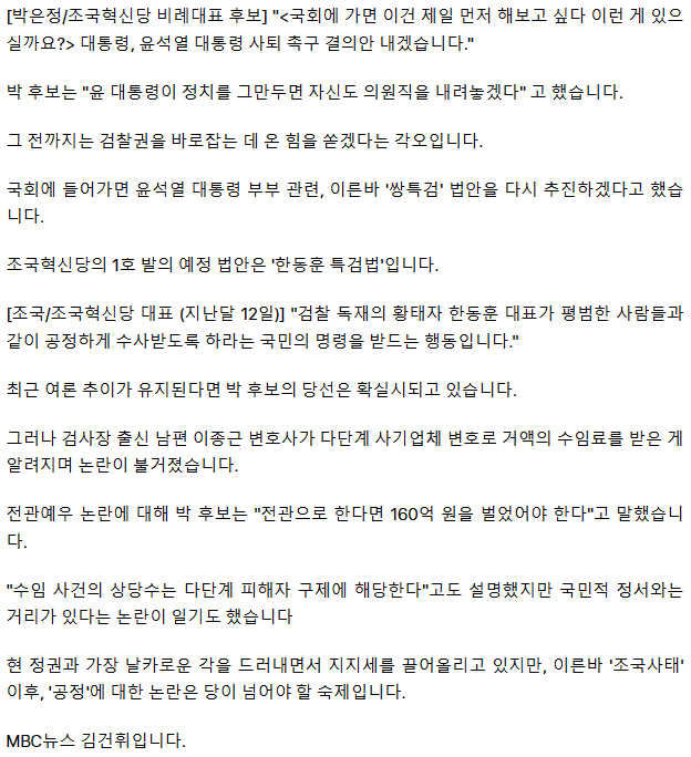 조국혁신당 박은정 "국회 입성 뒤 '윤 사퇴 촉구 결의안'부터 낼 것"