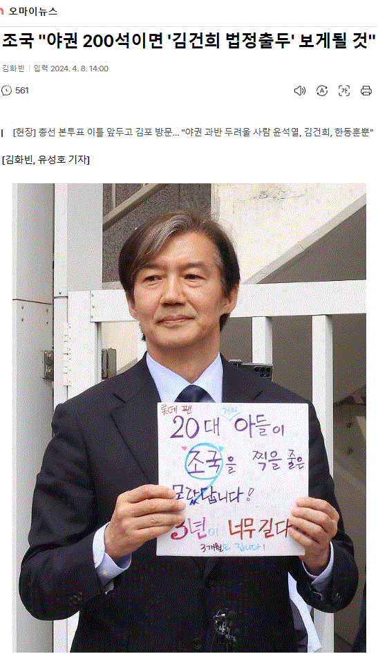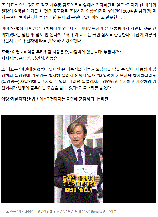 조국 "야권 200석이면 '김건희 법정출두' 보게될 것"