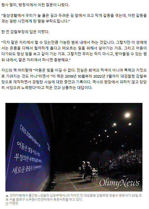 한동수 전 대검 감찰부장 "윤석열 격노는 미화됐다"