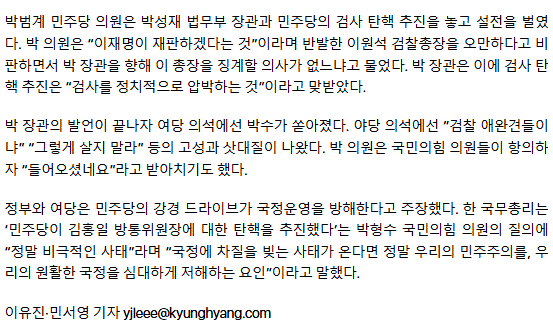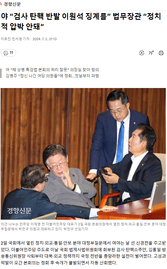 야 “검사 탄핵 반발 이원석 징계를” 법무장관 “정치적 압박 안돼”