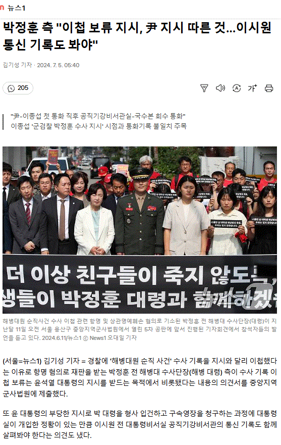 박정훈 측 "이첩 보류 지시, 尹 지시 따른 것…이시원 통신 기록도 봐야"