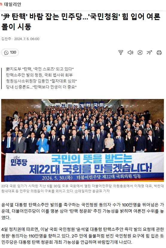 '尹 탄핵' 바람 잡는 민주당…'국민청원' 힘 입어 여론몰이 시동
