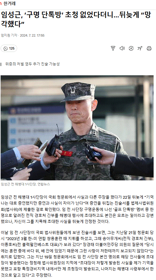 임성근, ‘구명 단톡방’ 초청 없었다더니…뒤늦게 “망각했다”