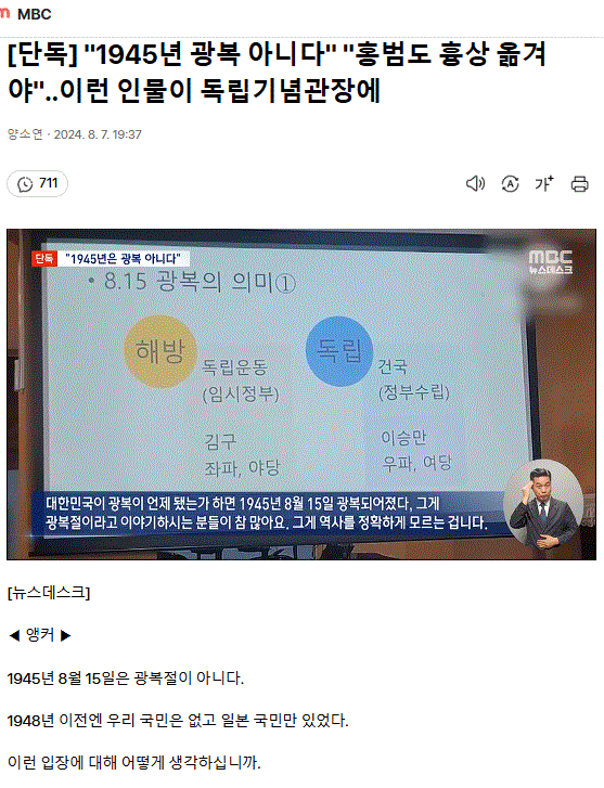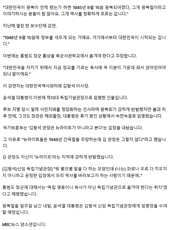 [단독] "1945년 광복 아니다" "홍범도 흉상 옮겨야"‥이런 인물이 독립기념관장에