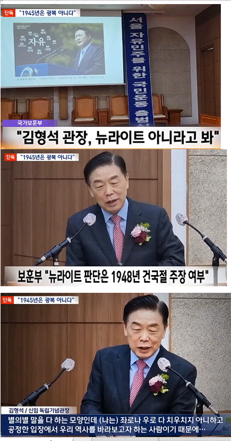 이종찬 광복회장은 또 김형석 관장이 “급조한 관변단체를 이끌면서 특정 정당과 업무협약을 맺어 역사 연구에 정치를 끌어들(였다)”고도 비판했다.