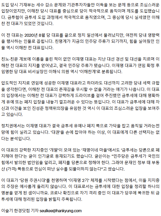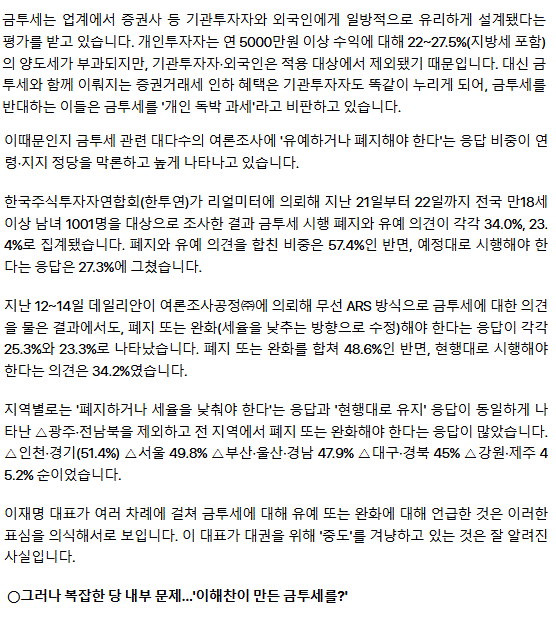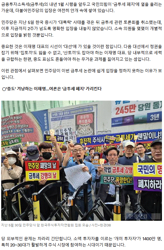 "다른 선택지 없는데"…이재명, 금투세 결단 '머뭇'하는 이유 [이슬기의 정치 번역기]