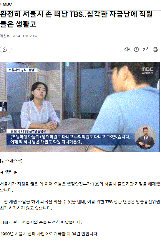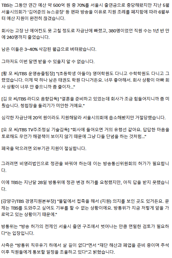 완전히 서울시 손 떠난 TBS‥심각한 자금난에 직원들은 생활고