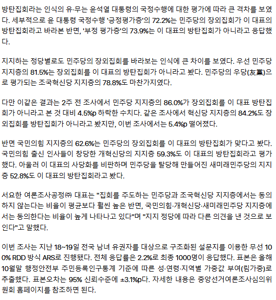 "민주당 장외집회는 이재명 사법리스크 방탄" 35.3%… "방탄 아냐" 59.9% [데일리안 여론조사]