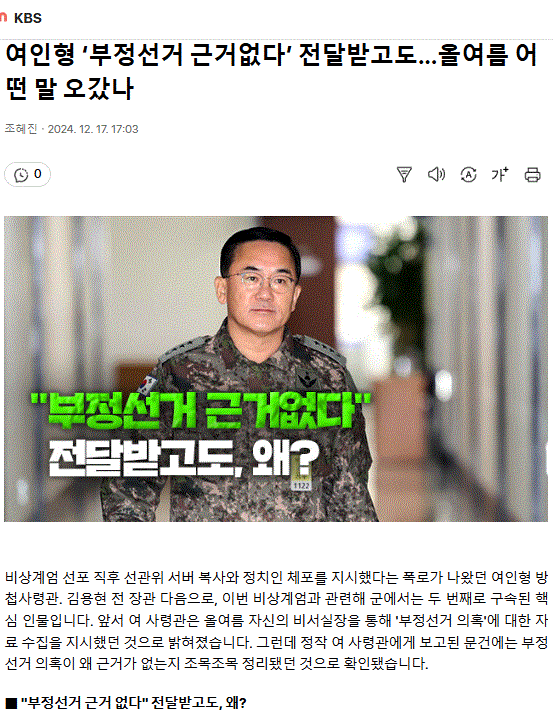 여인형 ‘부정선거 근거없다’ 전달받고도… 올여름 어떤 말 오갔나