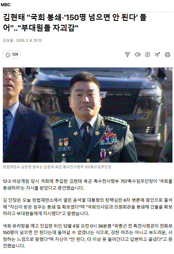 김현태 "국회 봉쇄·'150명 넘으면 안 된다' 들어"‥ "부대원들 자괴감"