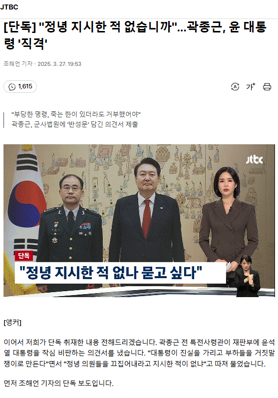 [단독] "정녕 지시한 적 없습니까"… 곽종근, 윤 대통령 '직격'
