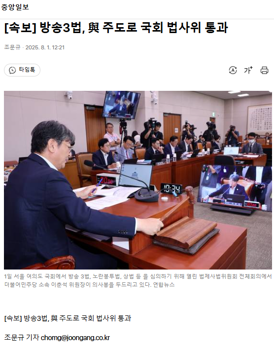 [속보] 방송3법, 與 주도로 국회 법사위 통과
