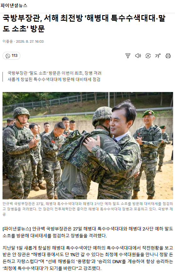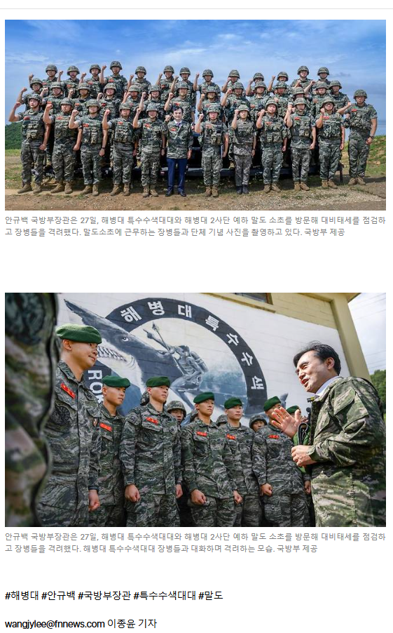 국방부장관, 서해 최전방 '해병대 특수수색대대·말도 소초' 방문