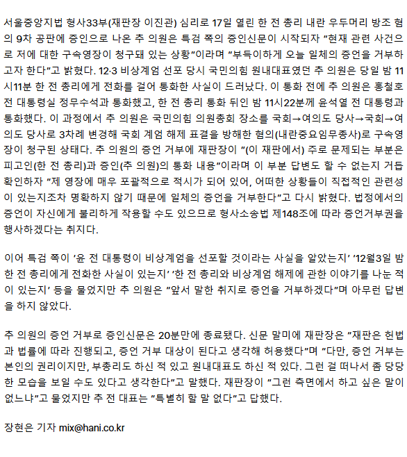 “부총리도 하신 분이”… 증인 추경호, 재판장 앞에서 입 닫고 20분 버텨 ㅡ 추경호를 구속하라