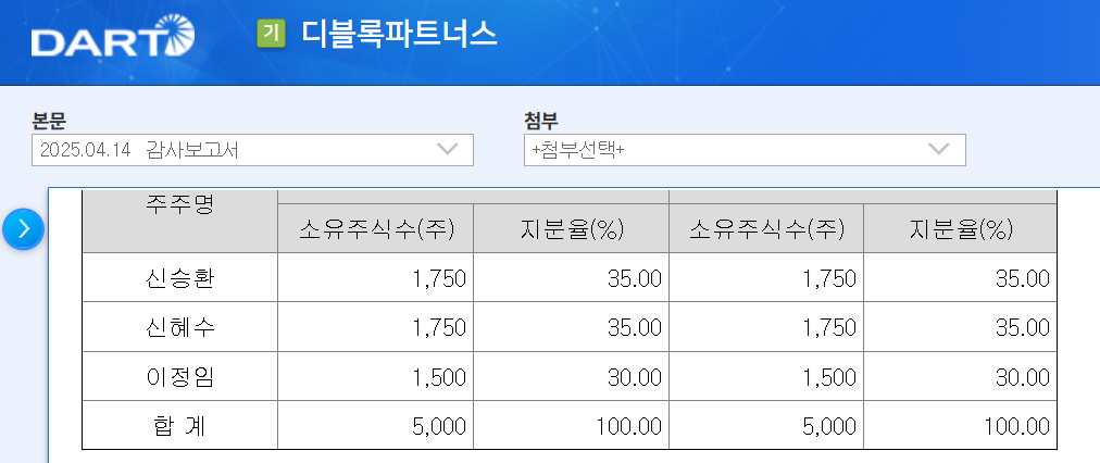 그 지배주주가   신종전 회장이 나오고   여기에  자녀들 디블록파트너스가 있습니다