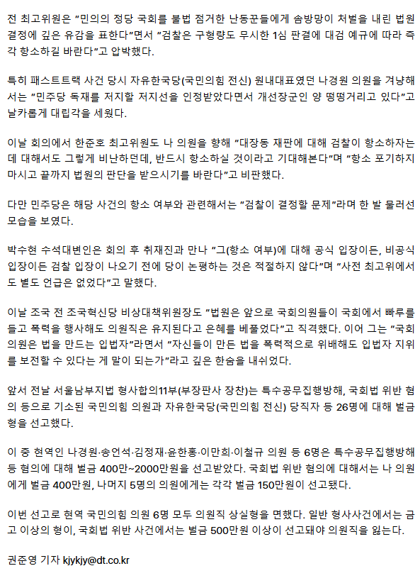 전현희 폭발 “나경원, 개선장군 양 떵떵거려… 국회 불법 점거한 난동꾼들”ㅡ 난동꾼들에 벌금이라니