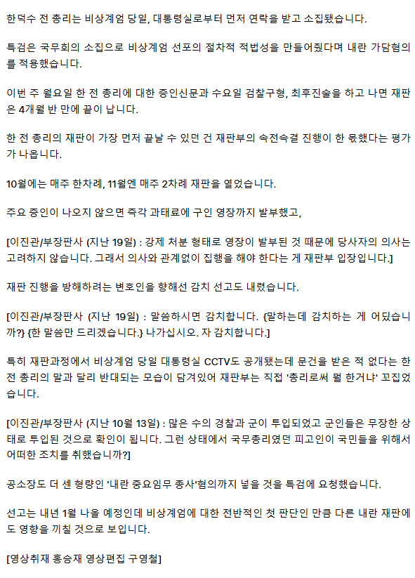 12.3 비상계엄 '첫 판단' 나온다… 한덕수 재판 내년 1월 선고