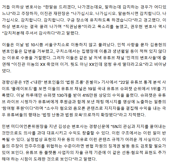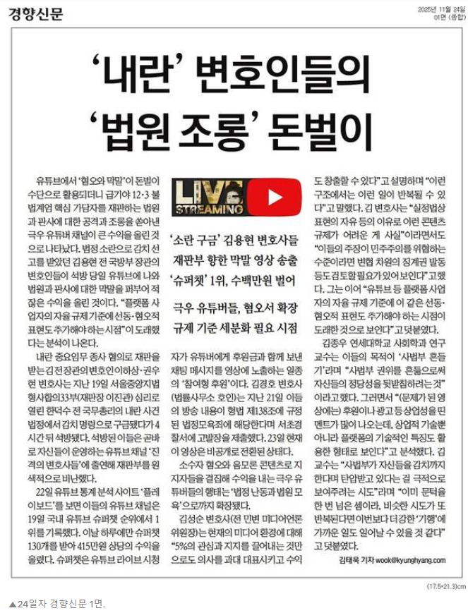 '내란' 변호인, 판사 향해 막말... 경향신문 "서부지법 사태 버금가는 '사법부 테러'"