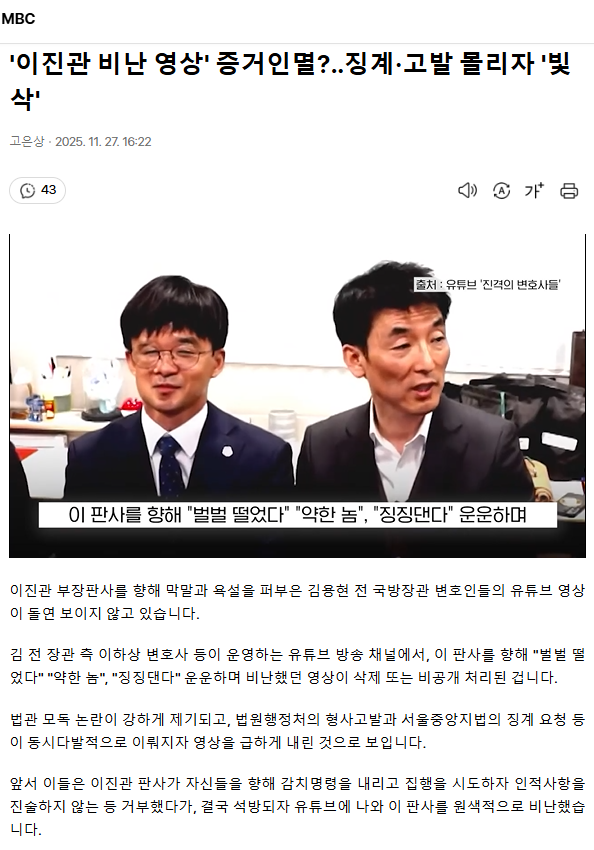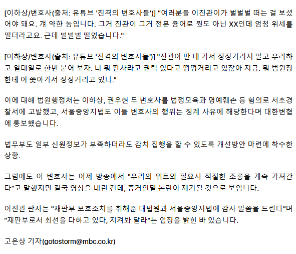 '이진관 비난 영상' 증거인멸?‥ 징계·고발 몰리자 '빛삭' ㅡ이하상, 권우현 변호사 박탈하라
