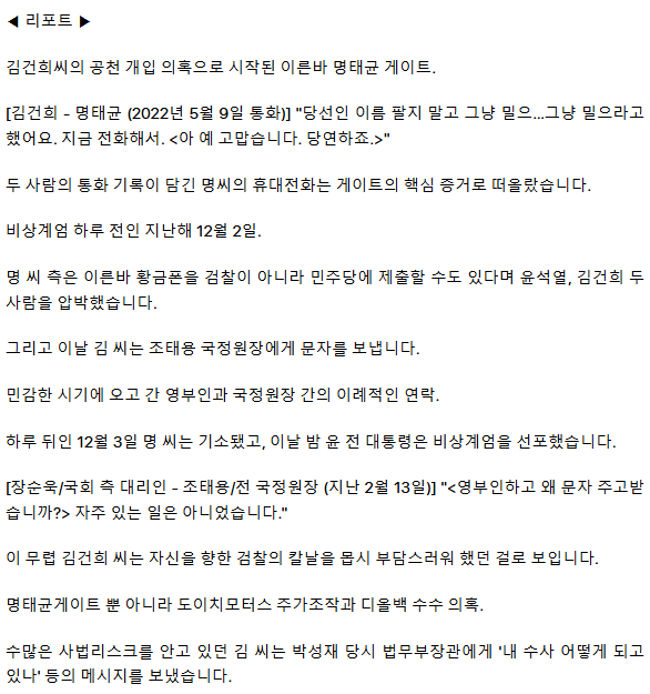 내란 동기는 김건희 사법리스크?‥명태균, 조태용, 박성재, 최재영까지