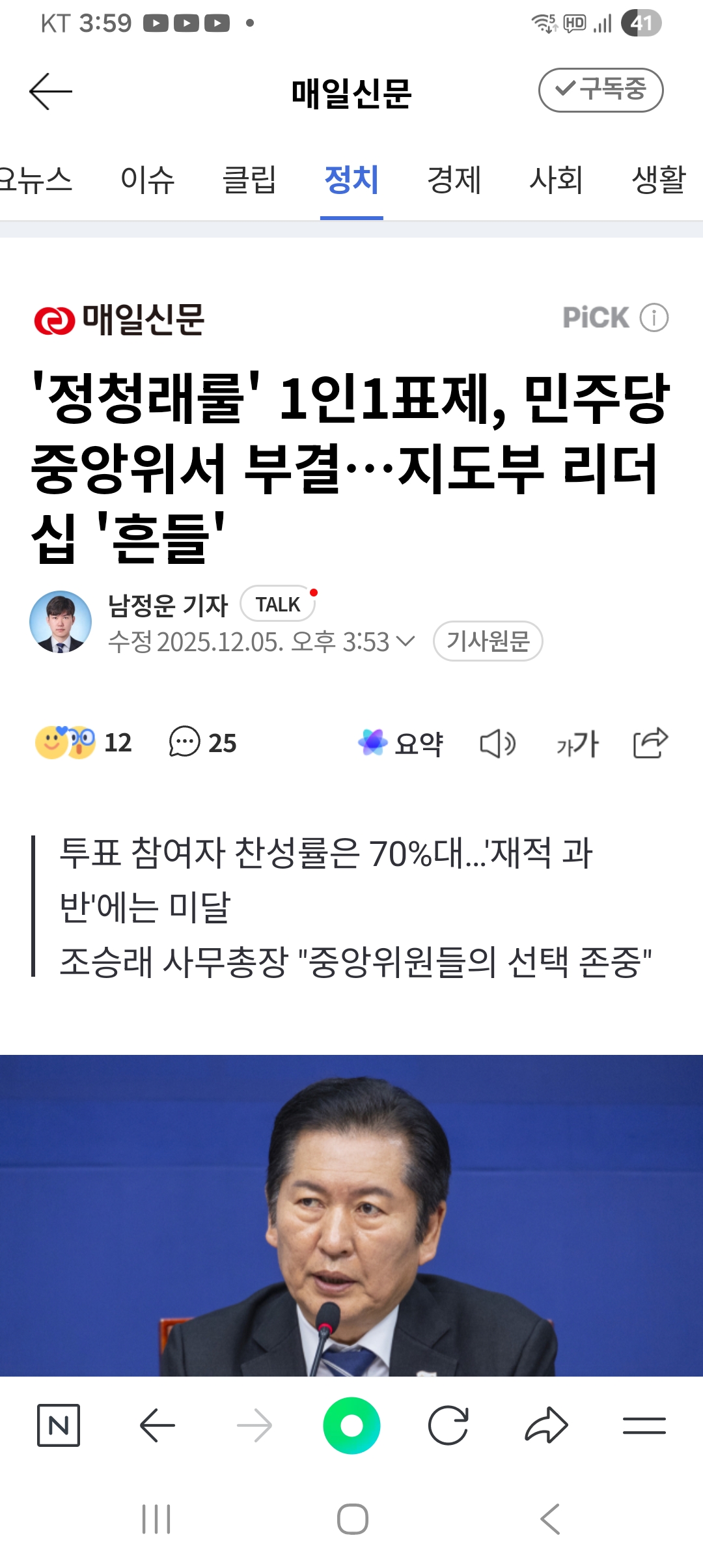 당헌당규를 위반하여 정당성이 없는 전당원투표를 실시한 자신의 잘못은 알지 못하고 친명에서 그 원인을 찾으려고 하는 이상 정청래 지도부는 희망이 없어 보인다 정당성을 갖춘 전당원투표라면 아무리 친명이라고 해도 반대하지 못하고 부결 못한다