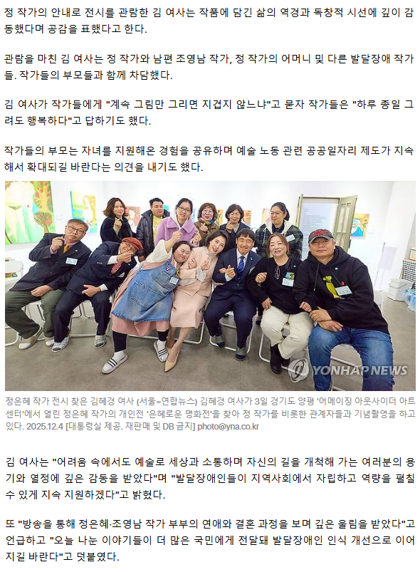 金여사, 발달장애 화가 정은혜 전시관람… "발달장애인 자립지원"
