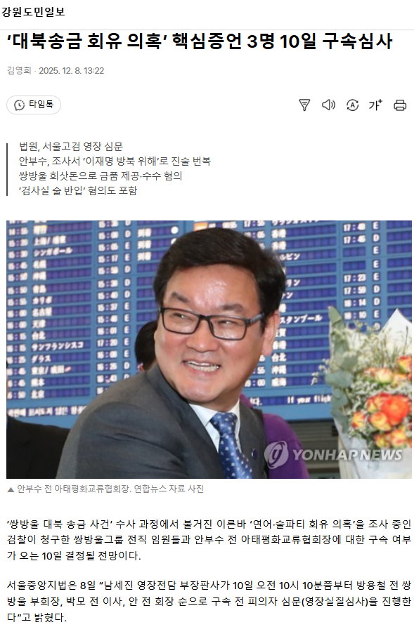 대북송금 회유 의혹핵심증언 310일 구속심사 ㅡ 안부수, 쌍방울 전직 임원 2