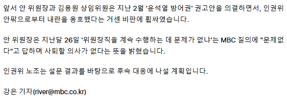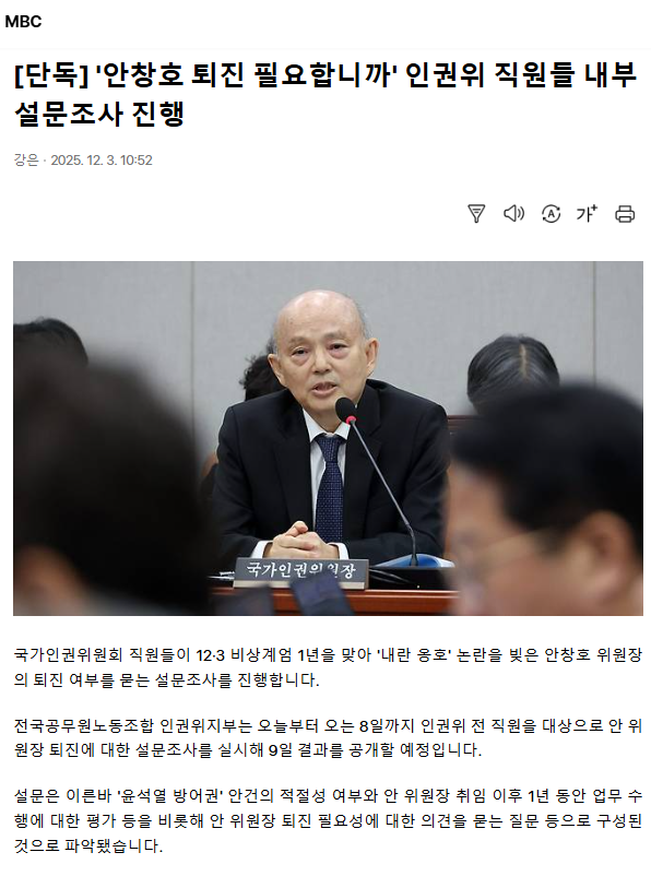 [단독] '안창호 퇴진 필요합니까' 인권위 직원들 내부 설문조사 진행