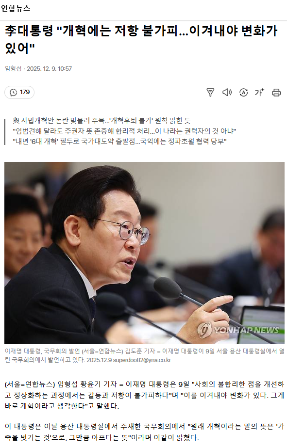 李대통령 "개혁에는 저항 불가피… 이겨내야 변화가 있어"