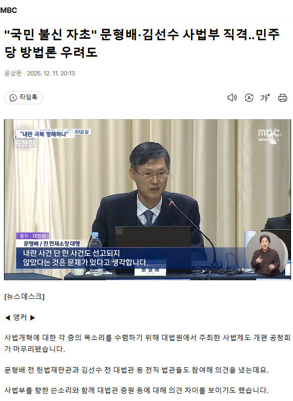 "국민 불신 자초" 문형배·김선수 사법부 직격‥민주당 방법론 우려도 ㅡ 문형배를 대법원장 임명