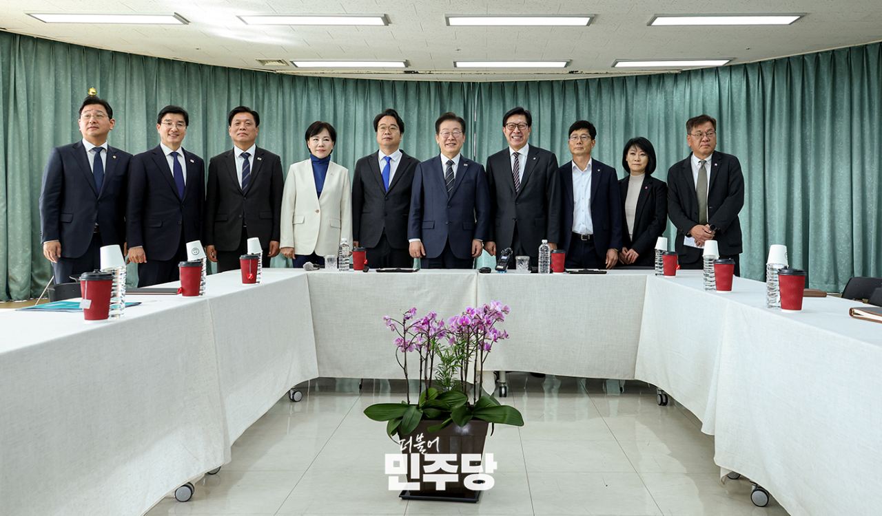 이재명 당대표가 2025.03.05.(수) 국회 본청 당대표회의실에서 열린 경제 활성화를 위한 더불어민주당-한국경제인협회 민생경제간담회에 참석하여 기념 촬영을 하고 있다.