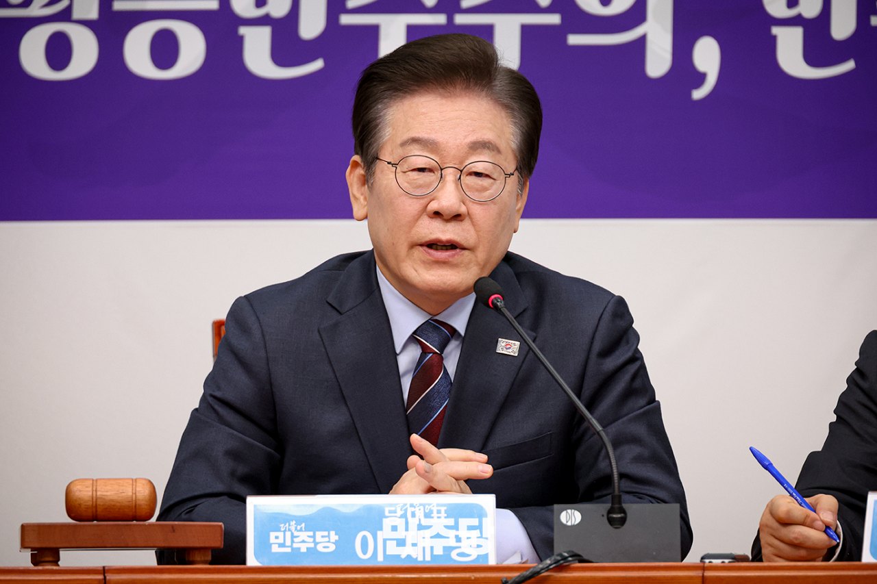 이재명 당대표가 2025.03.09.(일) 국회 본청 316호에서 열린 야5당 대표 비상시국 공동대응을 위한 원탁회의에 참석하여 발언하고 있다.