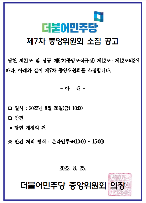 제7차 중앙위원회 소집 공고