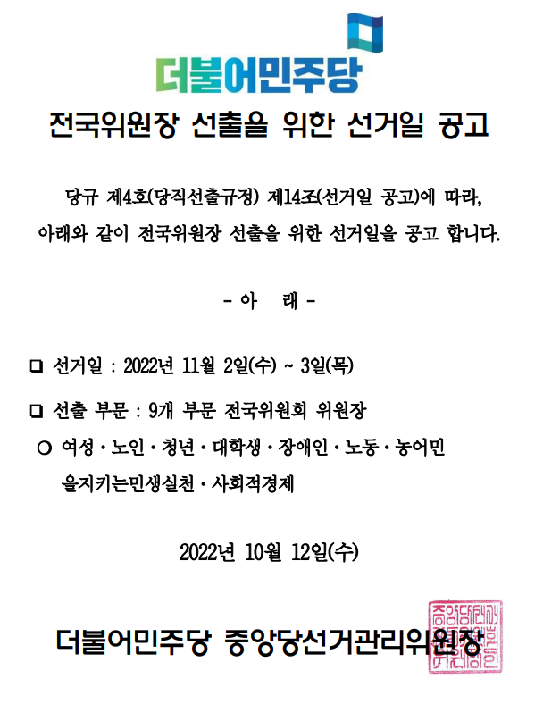 더불어민주당 충남도당 사무직당직자(계약직) 채용공고