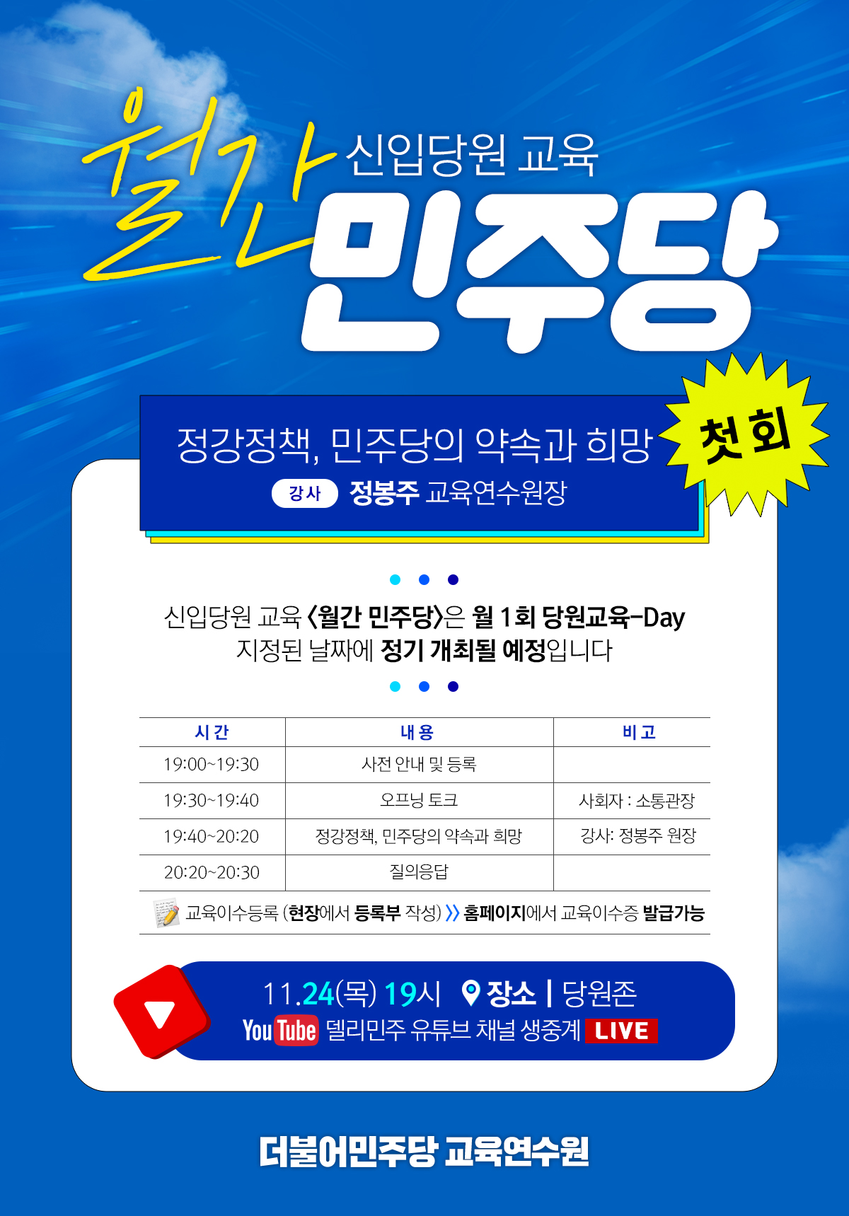 신입당원 교육 [정강정책, 민주당의 약속과 희망] 첫 회 안내
