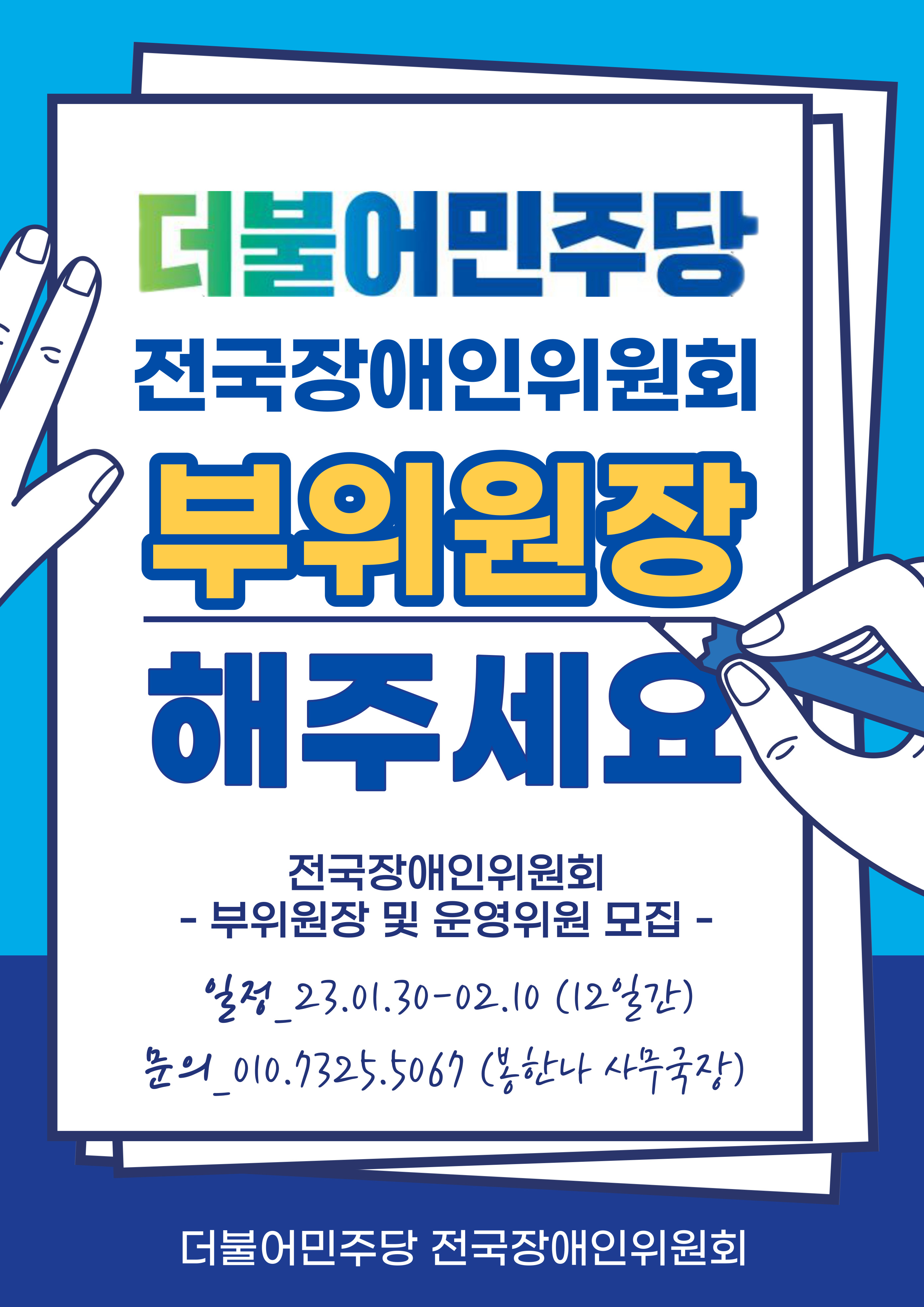 더불어민주당 전국장애인위원회에서 부위원장과 운영위원을 모집합니다.
