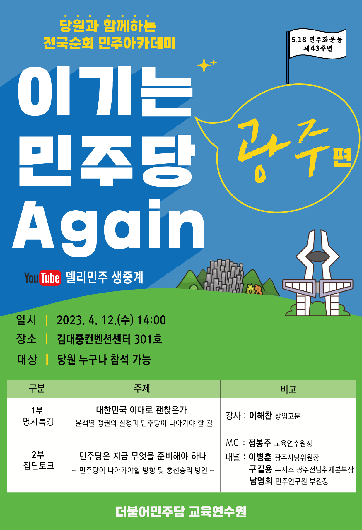 당원과 함께하는 전국순회 민주아카데미 : 이기는 민주당 Agian - 광주 편-