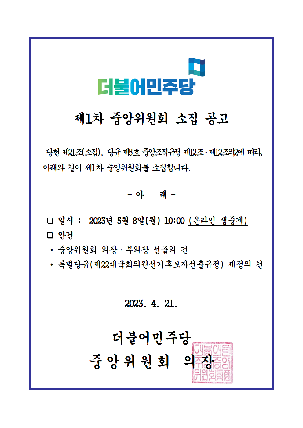 제1차 중앙위원회의 소집 공고