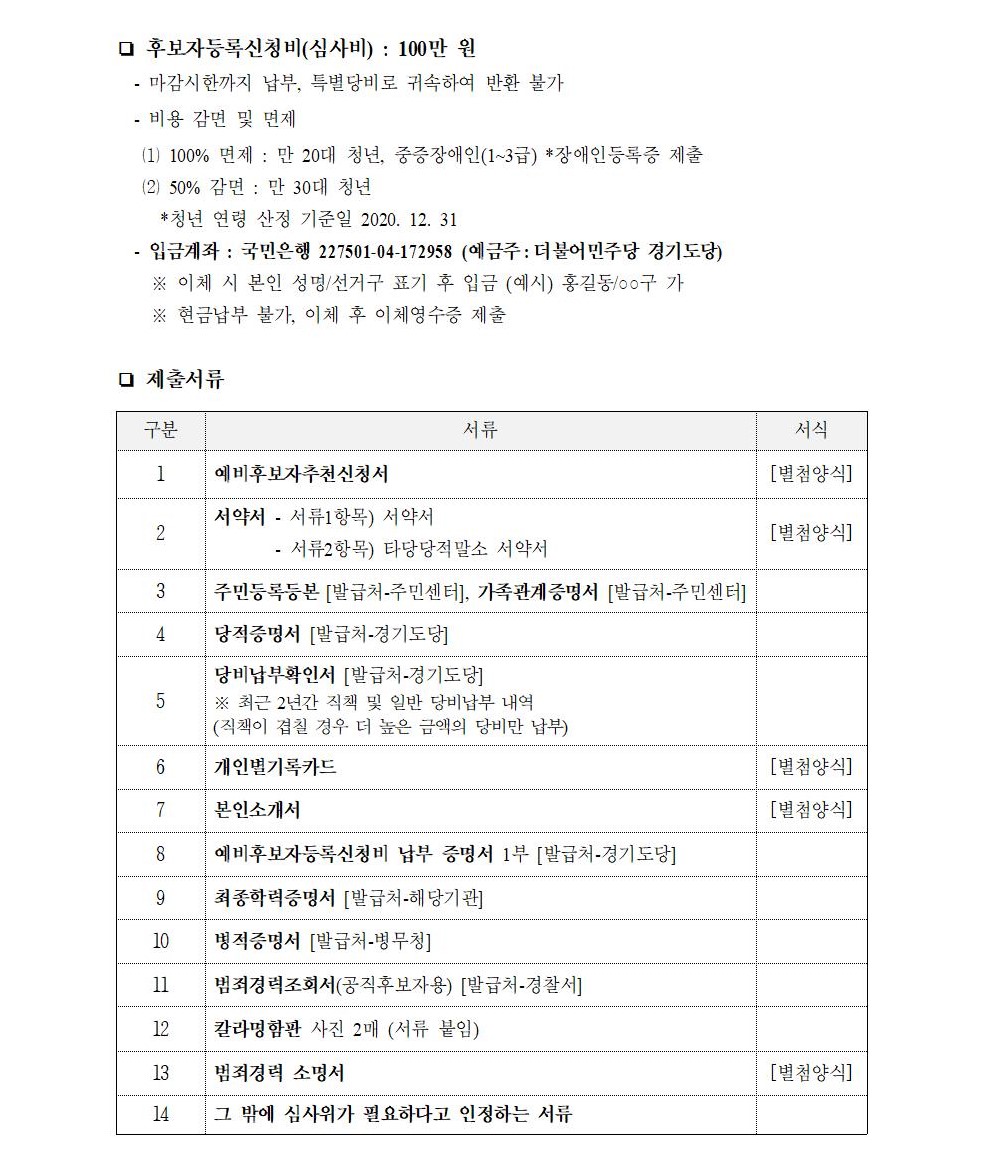 2021년 재·보궐선거 경기도당 공직선거 예비후보자 신청 공모 공고 (광역)