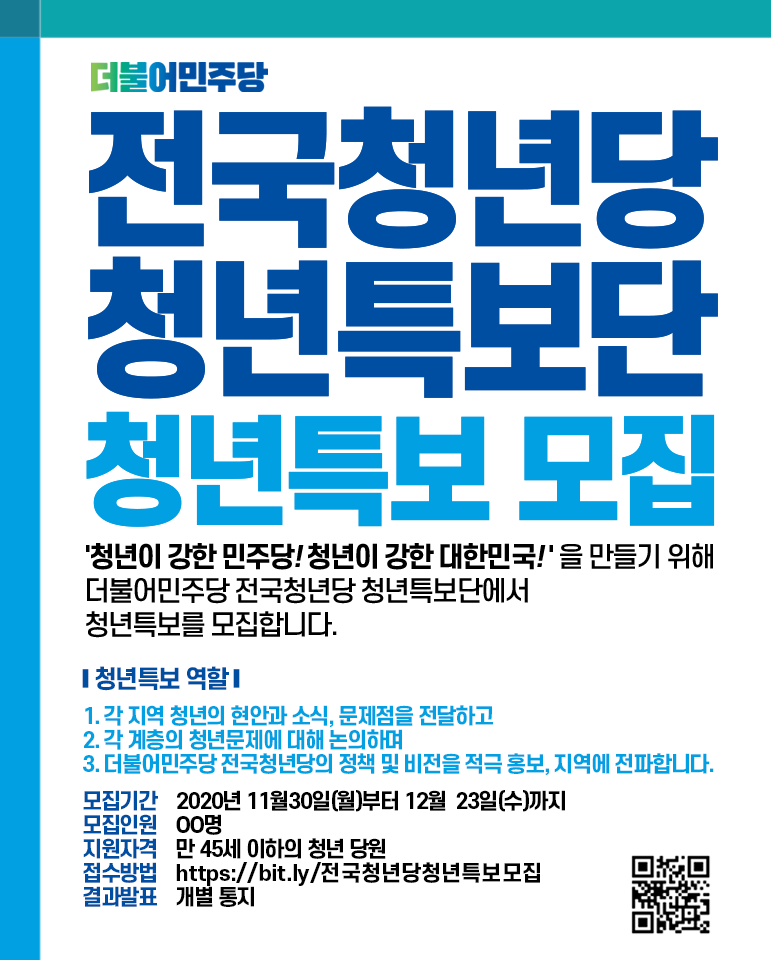 더불어민주당 전국청년당 청년특보단에서 청년특보를 모집합니다.