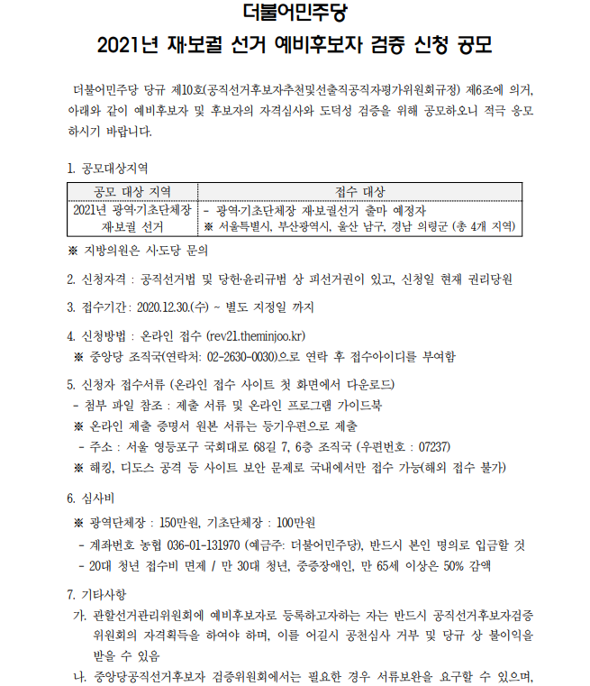 2021년 재보궐선거 예비후보자 검증 신청 공모[마감]