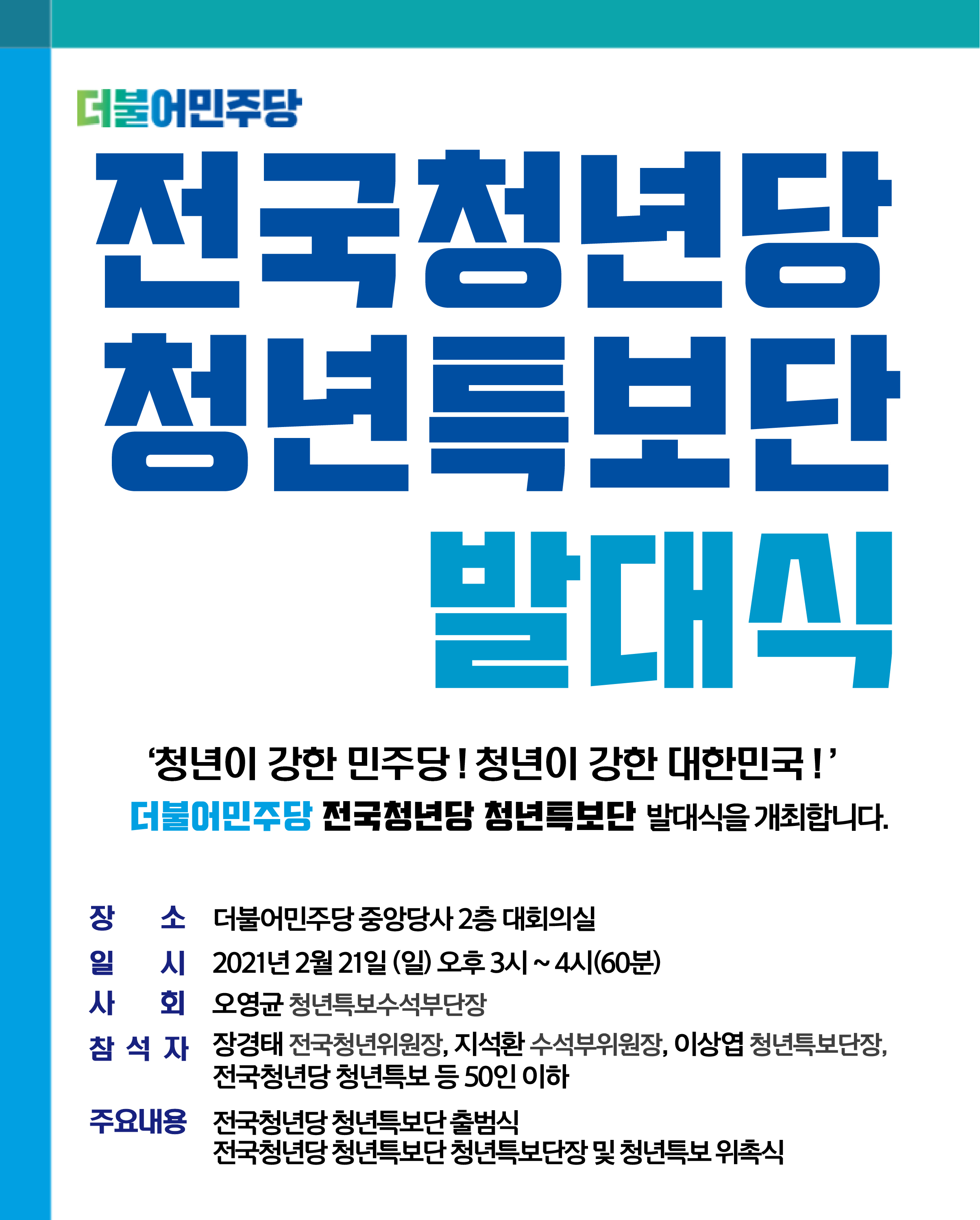 더불어민주당 전국청년당 청년특보단 발대식을 개최합니다.