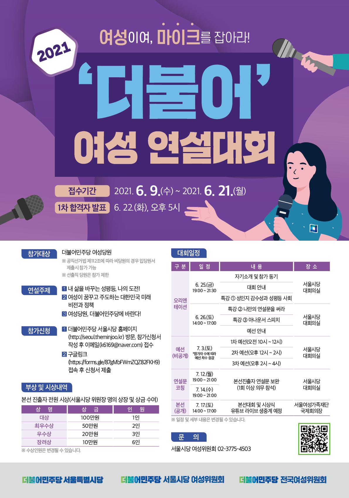 2021 '더불어' 여성연설대회 참가신청서 및 대회 안내문
