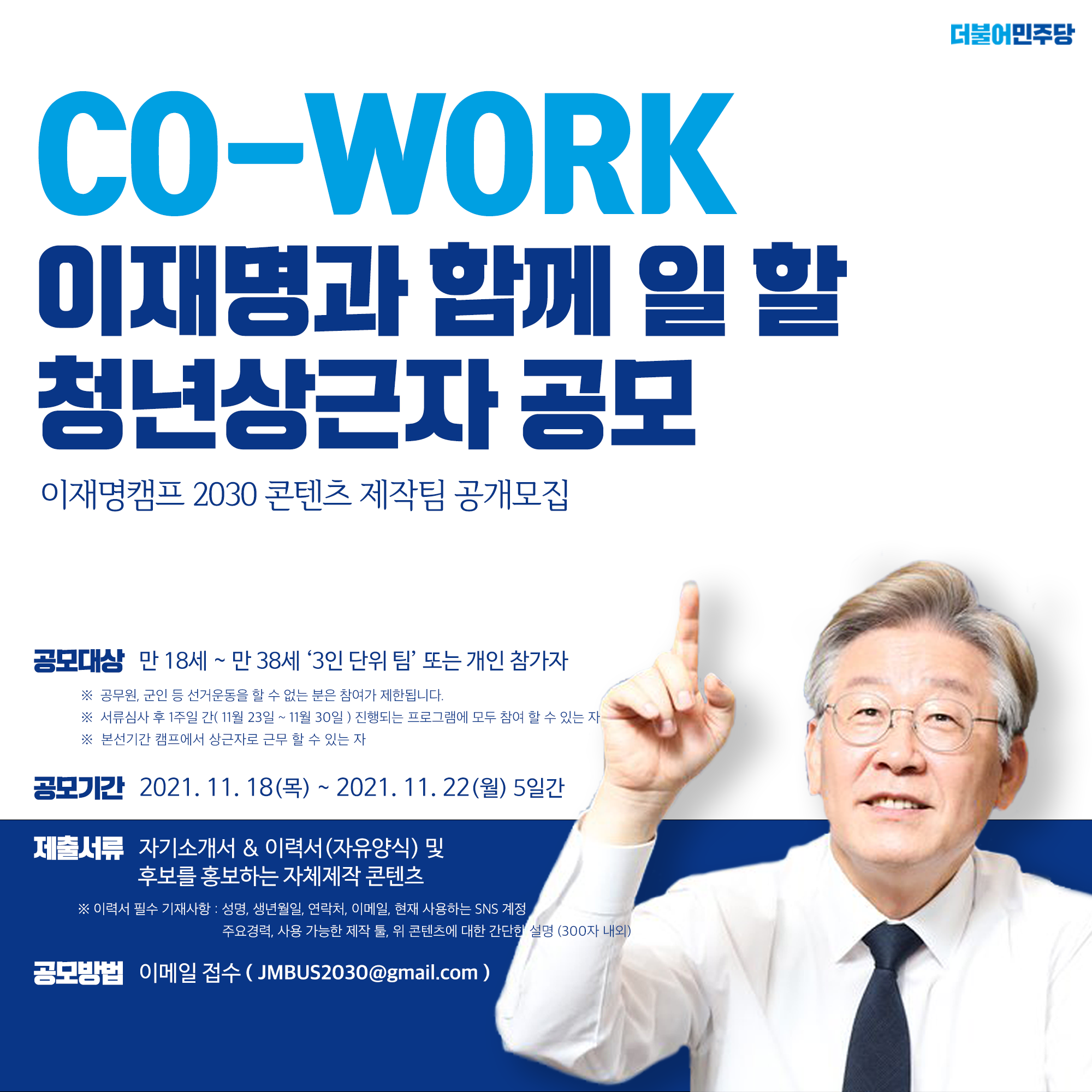 CO-WORK 이재명과 함께 일 할 청년상근자 공모