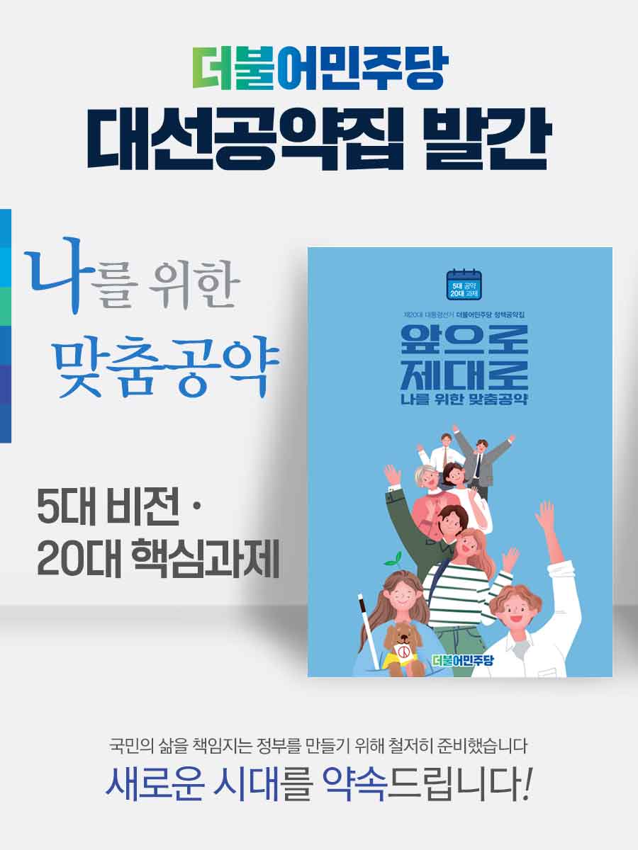 * 더불어민주당 제20대 대통령선거 정책공약집 책자는 국회의사당 소통관 서점에서 구매 가능합니다.