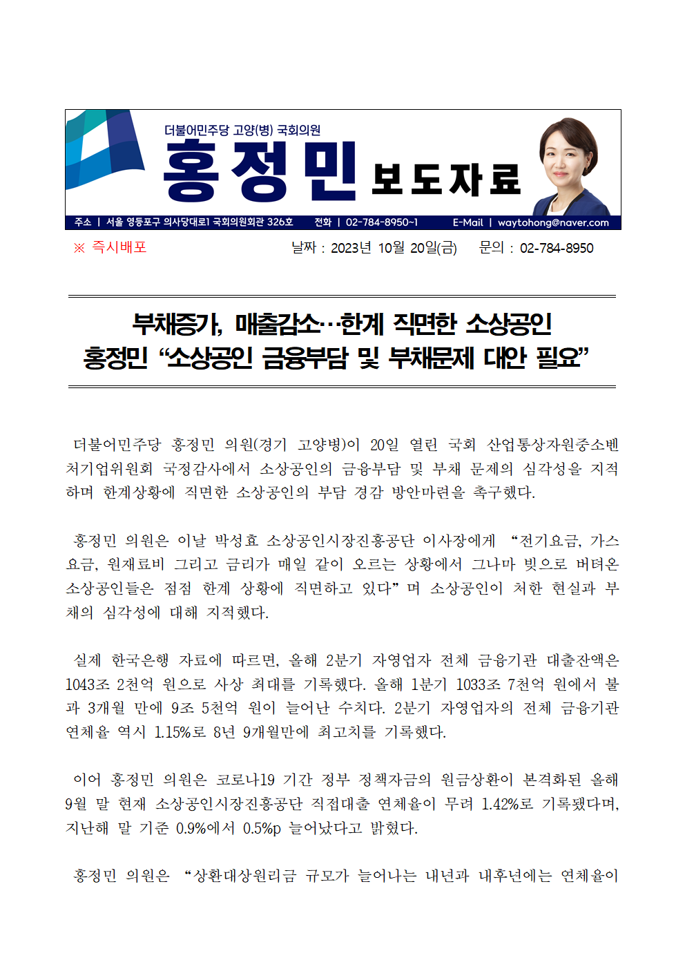 [홍정민 의원 보도자료] 부채증가, 매출감소…한계 직면한 소상공인