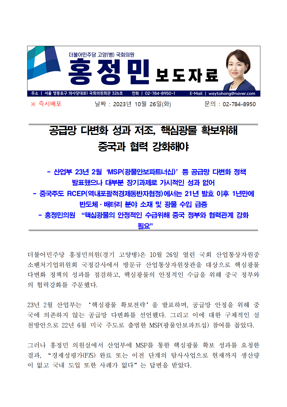 231026_홍정민의원_공급망_다변화_성과_저조_핵심광물_확보위해_중국과_협력_강화해야.hwp