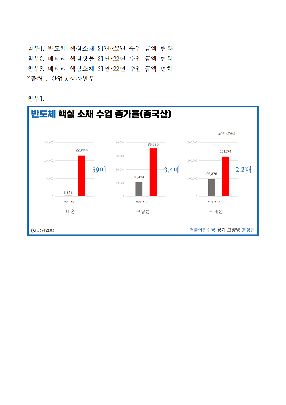 [홍정민 의원 보도자료] 공급망 다변화 성과 저조, 핵심광물 확보위해 중국과 협력 강화해야