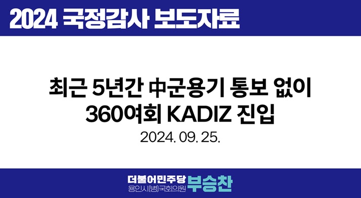 - 부승찬 의원, 동중국해 상공 일부가 중첩되는 카디즈 구역에서 안보공백 줄여야